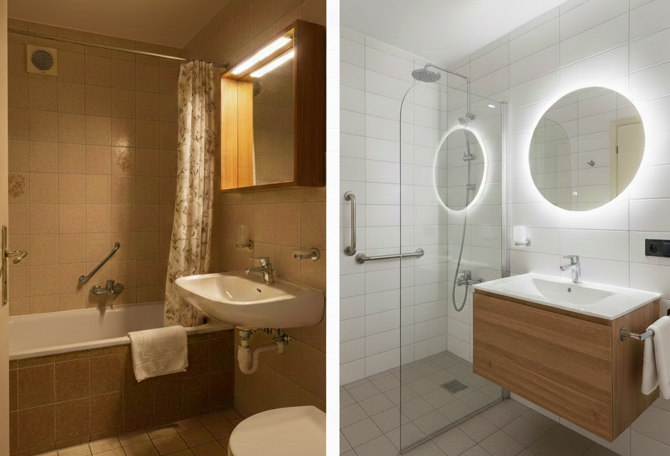 Das Badezimmer entscheidet heute über die Buchung. Wir ersetzen alte Nasszellen durch moderne Wellness-Oasen.